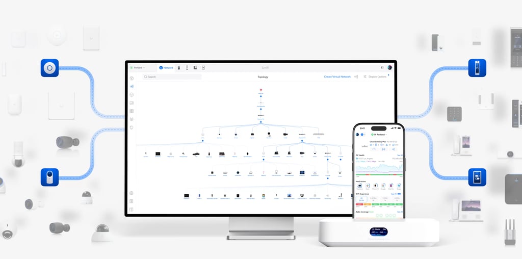 Het kernonderdeel voor je WiFi en bekabelde netwerk (switches, access points en routering). UniFi Network zorgt ervoor dat uw kantoorautomatisering, kassasystemen en WiFi-apparaten altijd verbonden zijn, zonder haperingen.